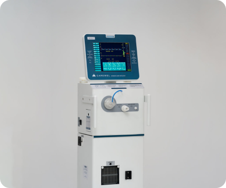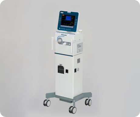 The ventilator has been designed and developed with extensive research for acute management of respiratory care. The touch operated control panel offers ease of operation. The touch panel is very sensitive and offers fast response by using the Projected Capacitive Technology. The layout is logically grouped with graphics and other parameters. While the adaptive modes offer better patient ventilator synchrony, the Trends and the Respiratory Mechanics help for adequate and effective ventilation in critical situations. The respiratory Mechanics is based on very powerful and effective software which is formulated with “Least Square Fitting”(LSF) technique. It provides several data pertaining to ventilation even without using the manoeuvres of Inspiratory Hold. The data is very extensive that would help better respiratory management. It provides parameters like Inspiratory Peak-Flow, Expiratory Peak-Flow, Driving Pressure, Plateau Pressure, Auto PEEP, Static compliance, Inspiratory & Expiratory Resistances, Expiratory R*C, Pressure –time product (PTP), Mechanical Power imposed and Rapid Shallow Breathing Index (RSBI) The ventilator offers advanced modes of ventilation to treat patients who are very critical or show unstable pulmonary conditions. The waves and the loops of ventilation give an adequate pictorial insight to the operator. The respiratory mechanics adds data quantitively to act judiciously. Lung protective ventilation strategy can be planned based on these facilities. The different flow patterns provide the wide options to apply for varied lung complications. The monitored data is always handy at critical situations. The accelerating or the decelerating patterns can have different slopes. The cases of Pneumothorax, Atelectasis, COPD, or ARDS may be better treated using these variations. The trend chart helps modify ventilator strategy followed and visualize the status for early recovery. The NIV is very advanced using intelligent software for maintaining synchrony with patients. The fast response to inspiratory demand and the variable ETS has been the key. Complications associated with invasive ventilation may thus be avoided. Variable ETS has an important role during spontaneous breathing. It helps avoid asynchrony by using the proper duration of support for such breaths. Expressed in percent, higher ETS would withdraw the support early. Reverse would be the case for lower ETS. The Ventilator is very sleek and compact in design with a built-in air compressor. This compressor based on Peltier Effect for removal of moisture.